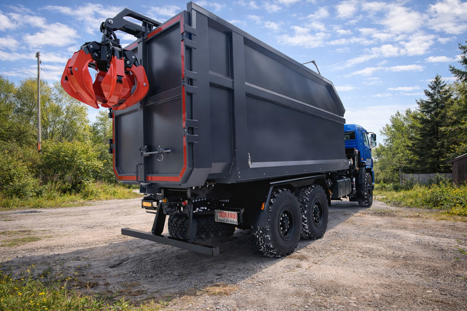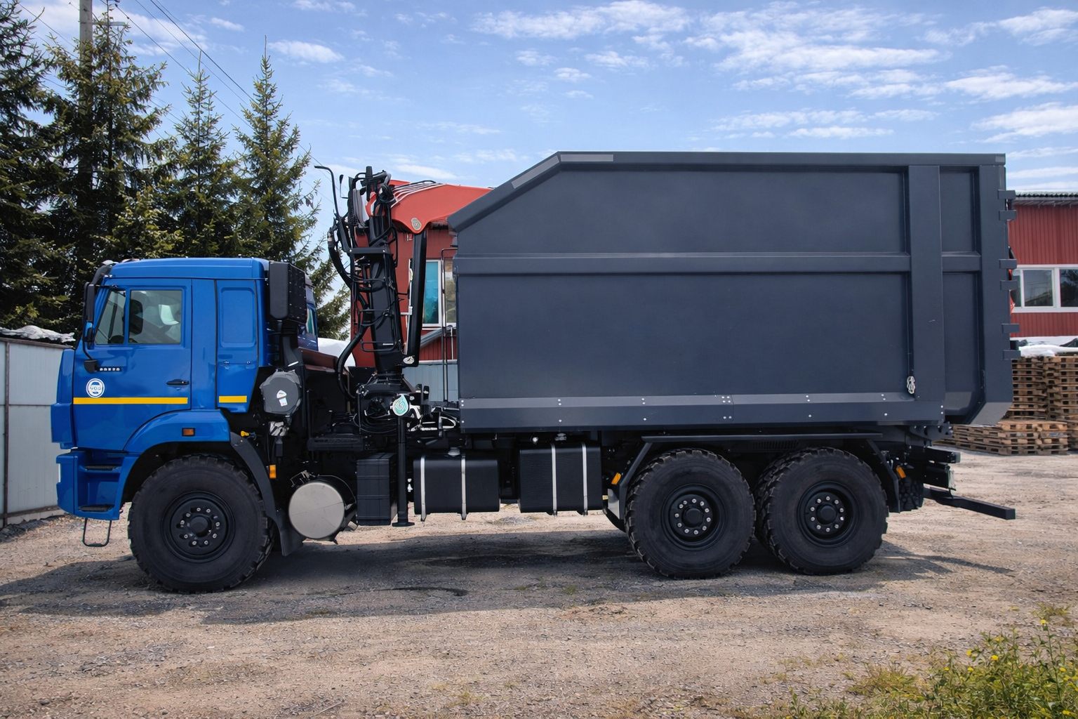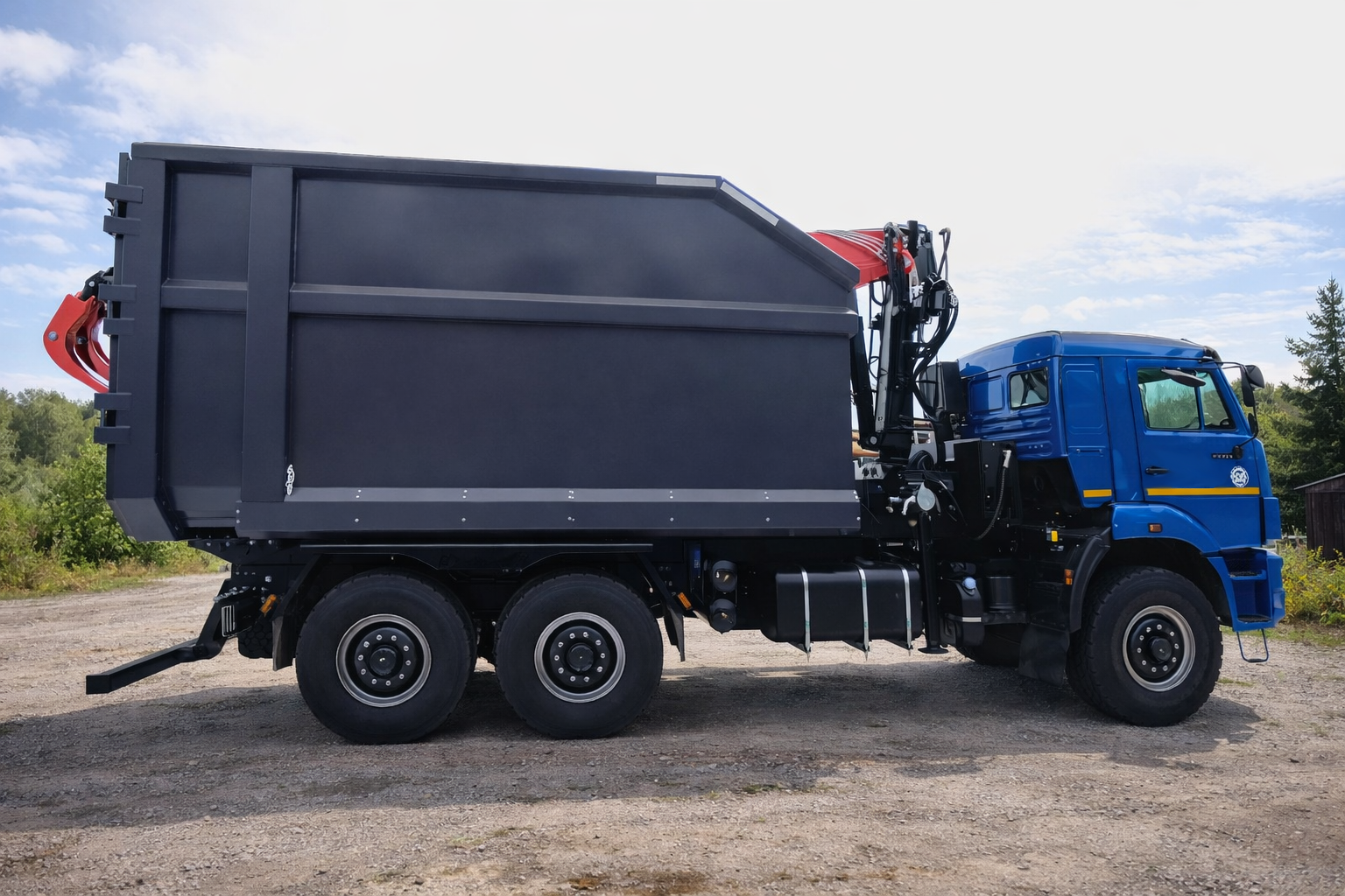 Ломовоз КАМАЗ-43118 благодаря вездеходному шасси можно использовать для сбора и вывоза различных отходов и металлолома из труднодоступных мест - там где отсутствуют нормальные подъездные пути и требуется повышенная проходимость шасси.